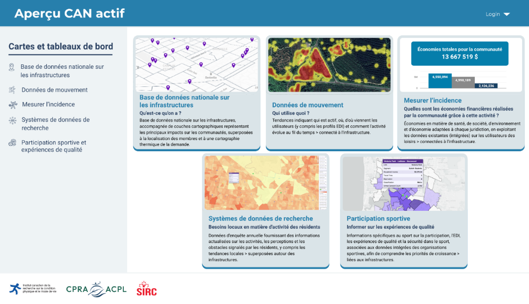 S'appuyant sur plus de 150 ans d'expérience combinée, le CFLRI, le SIRC et la ACPL, ainsi que leurs réseaux respectifs, s'unissent pour offrir une solution fiable et dirigée par des experts pour le secteur des sports, de l'activité physique, des loisirs et des parcs. La plateforme Aperçu CAN actif s'appuie sur le succès de l'outil Mesurer l'incidence ainsi que de la Base de données nationale sur les infrastructures, et inclura encore plus de systèmes uniques au Canada en matière d'infrastructures, de participation et de données de recherche afin de s'aligner sur les besoins politiques fédéraux et provinciaux.